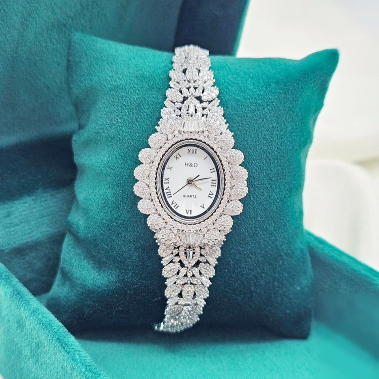 از ساعت های شیک و جذاب ساخته شده از نقره با عیار 925 می باشد.سنگ های به کار رفته در آن امرالد و برلیان از جنس اتمی زیرکونیا می باشند که به صورت میکروستینگ مخراج کاری شده اند و در برابر ضربه مقاوم اند.جنس بدنه از نقره به عیار 925 بوده و تنها قسمتی از محصول که نقره نیست موتور آن می باشد.آبکاری دو مرحله ای رودیوم(طلا سفید)، سبب کیفیت بی نظیر دوام رنگ آن شده است و به دلیل عدم استفاده از نیکل در ساختار آن،بدون حساسیت بوده و با پوست حساس سازگار است.وزن تقریبی ساعت +- 33.34 گرم می باشد